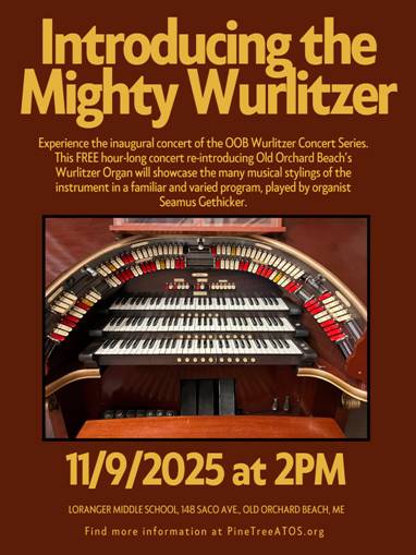 Experience the inaugural concert of the OOB Wurlitzer Concert Series. This FREE hour-long concert reintroducing Old Orchard Beach’s Wurlitzer Organ