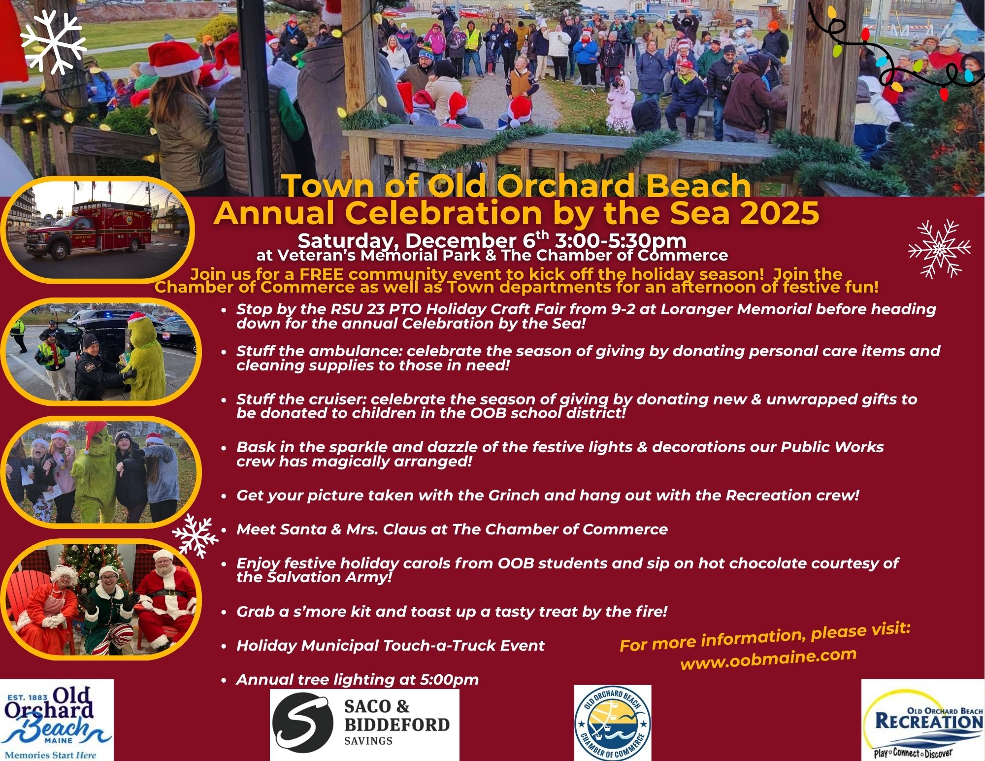 Beach party with bonfire for Christmas trees on the beach in front of the Carousel, and fireworks around 7:30 p.m.